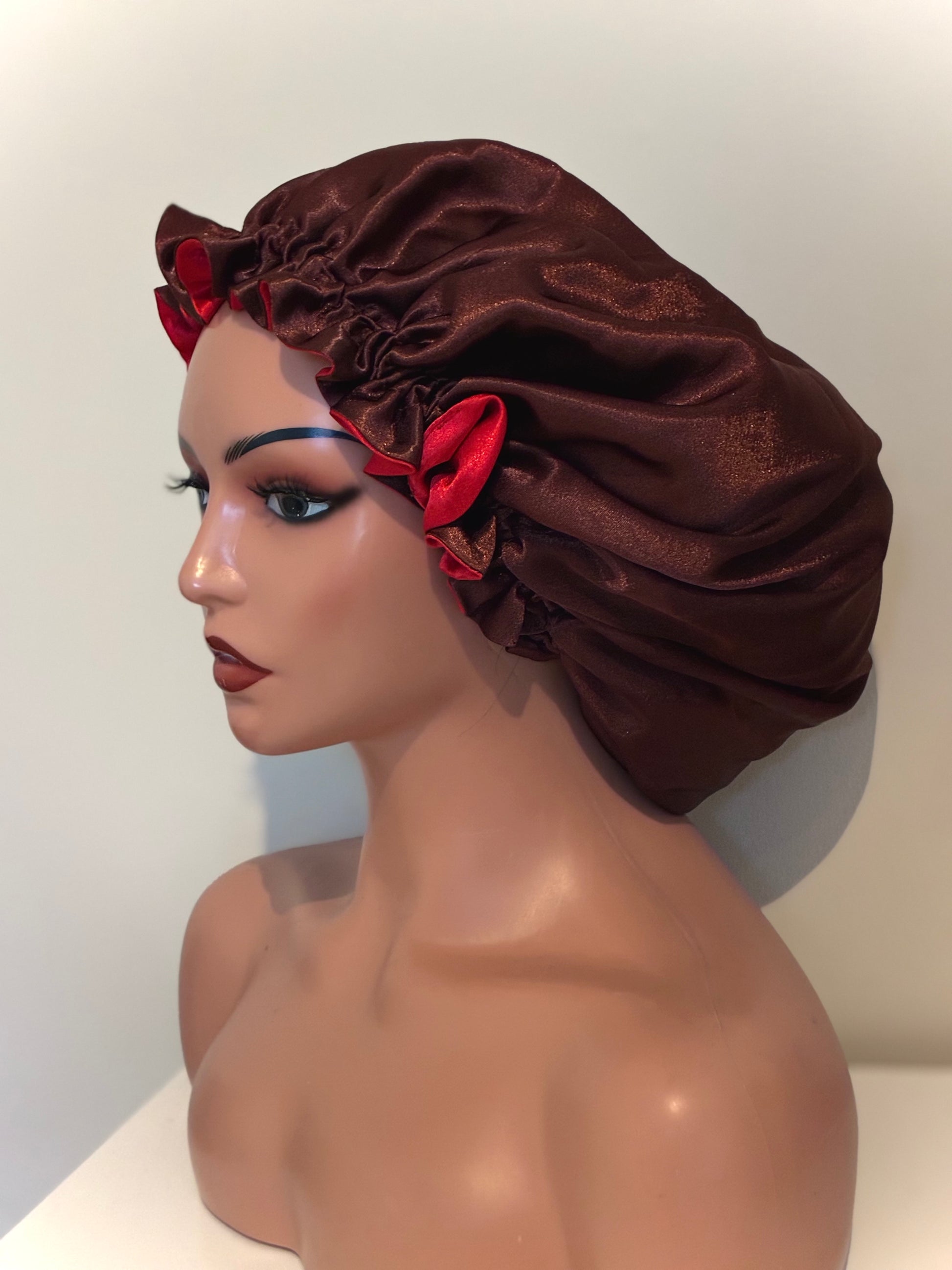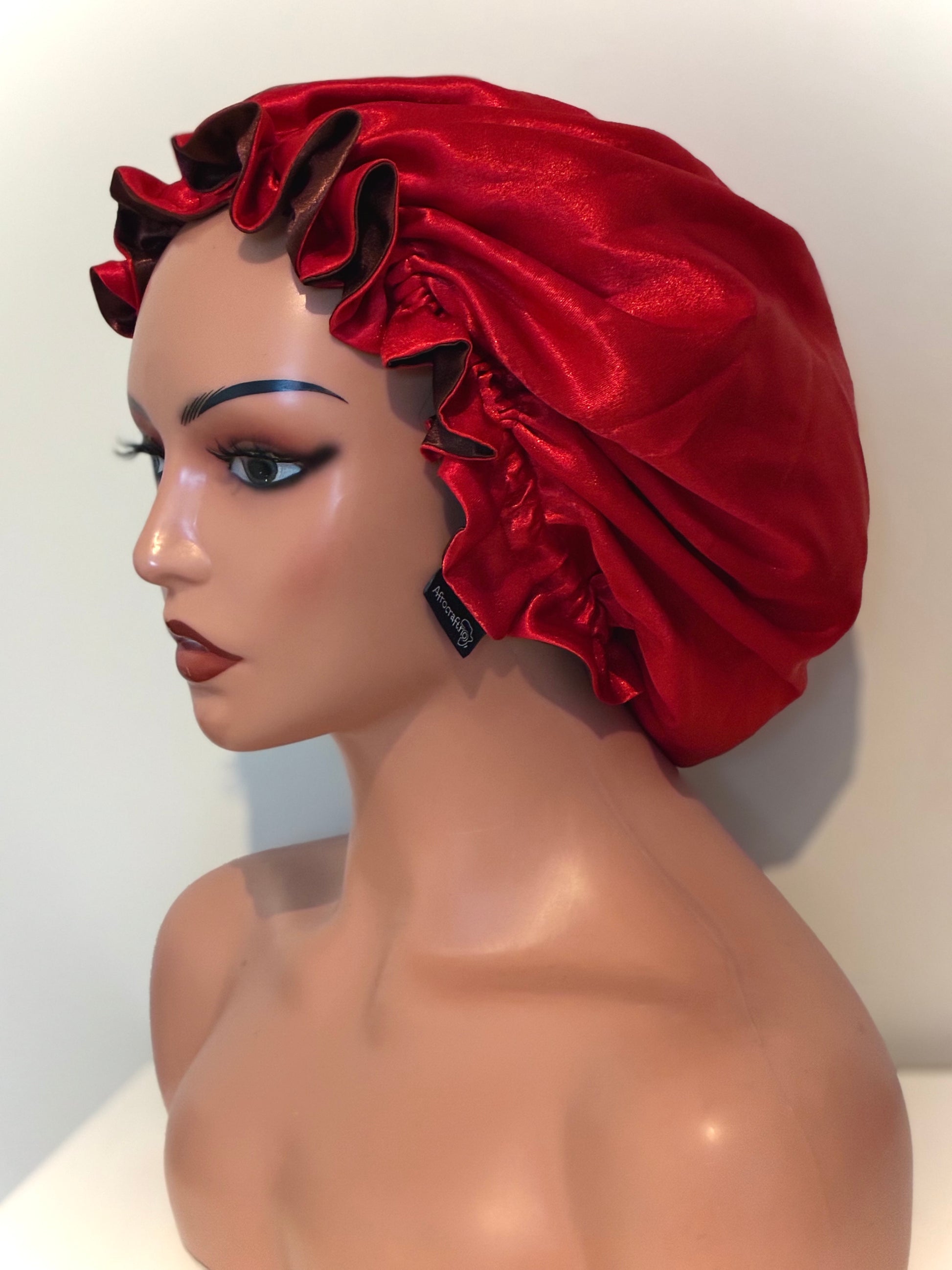 Stilig og praktisk hårbonnet i myk sateng som beskytter håret mot friksjon, uttørking og slitasje. Reversibel design gir to uttrykk i ett, og den justerbare passformen gjør at den sitter godt på både voksne og barn.