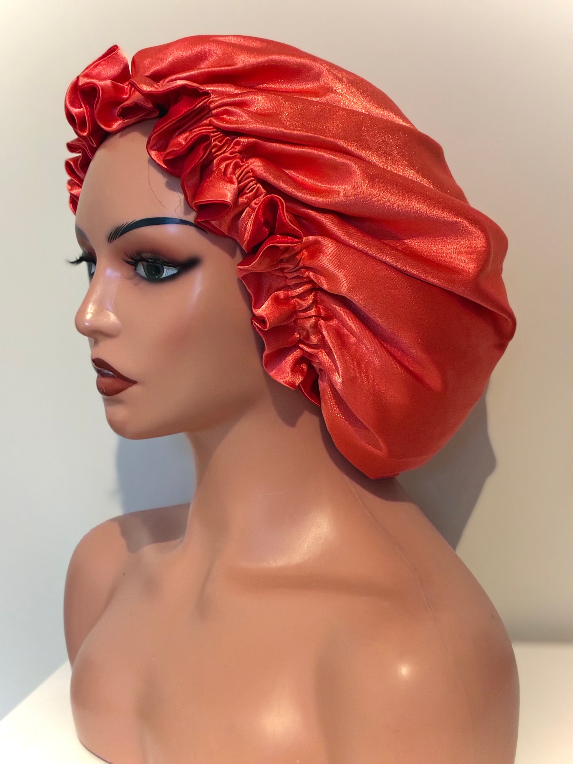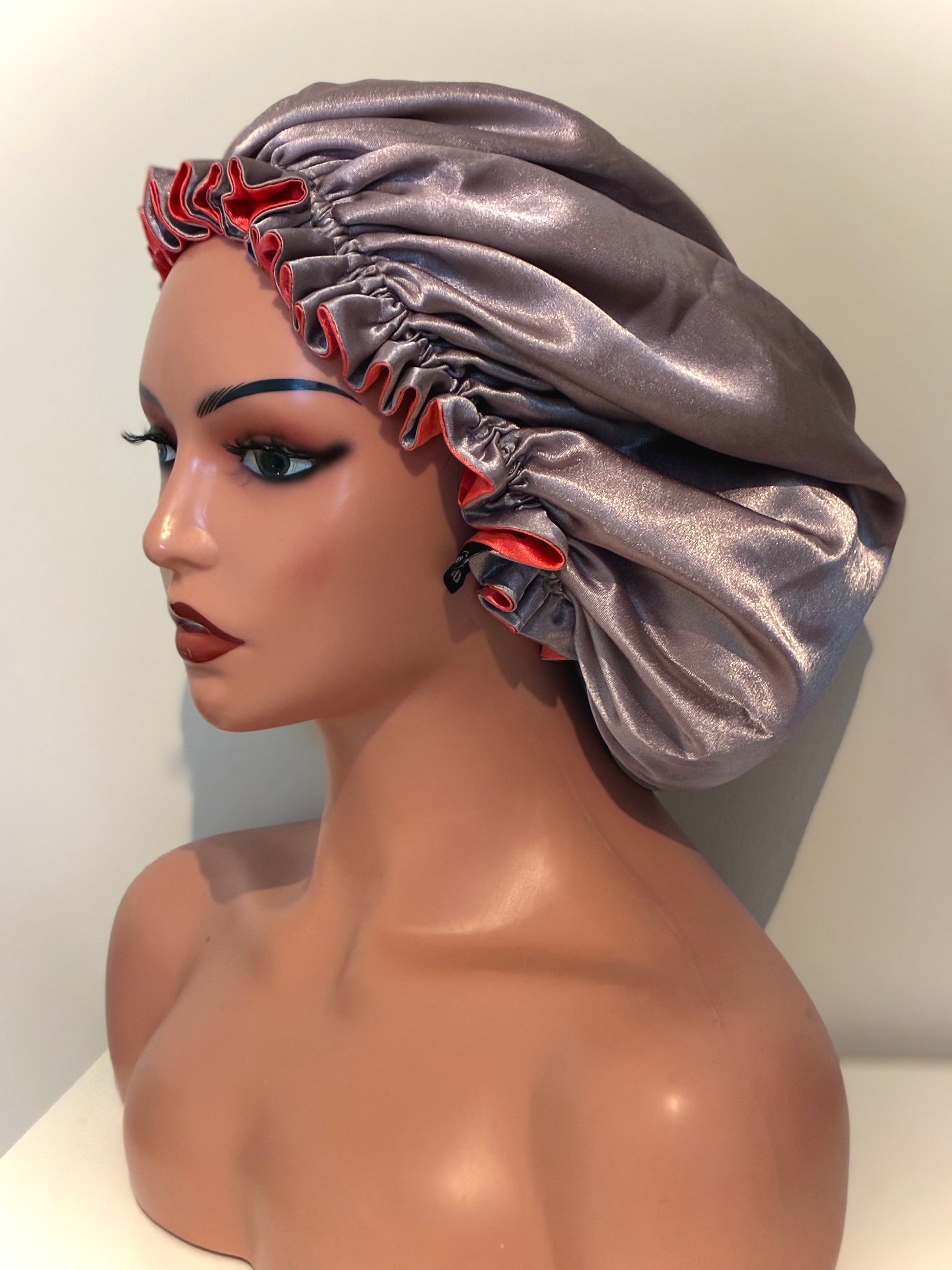 Stilig og praktisk hårbonnet i myk sateng som beskytter håret mot friksjon, uttørking og slitasje. Reversibel design gir to uttrykk i ett, og den justerbare passformen gjør at den sitter godt på både voksne og barn.