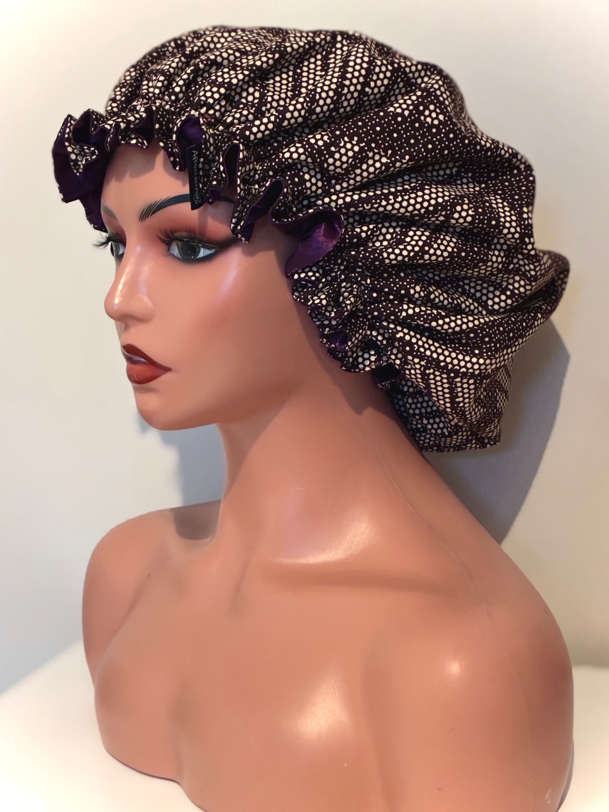 Unik, stilig og funksjonell hårbonnet med to sider – afrikansk stoff på den ene, myk sateng på den andre. Satengen beskytter håret mot friksjon og slitasje, mens capulana-stoffet gir et fargerikt uttrykk. Den justerbare passformen gjør at den sitter godt på både voksne og barn.