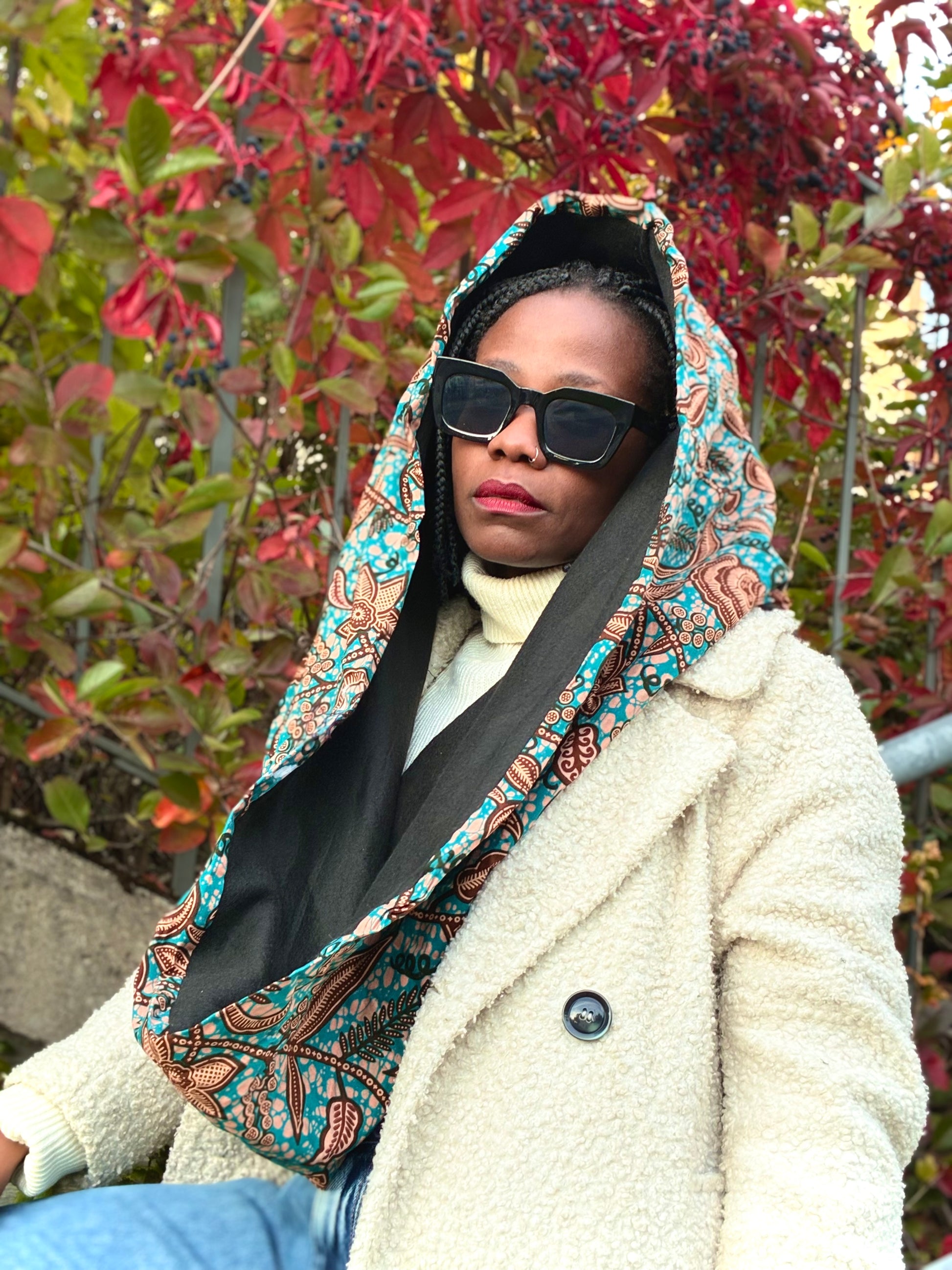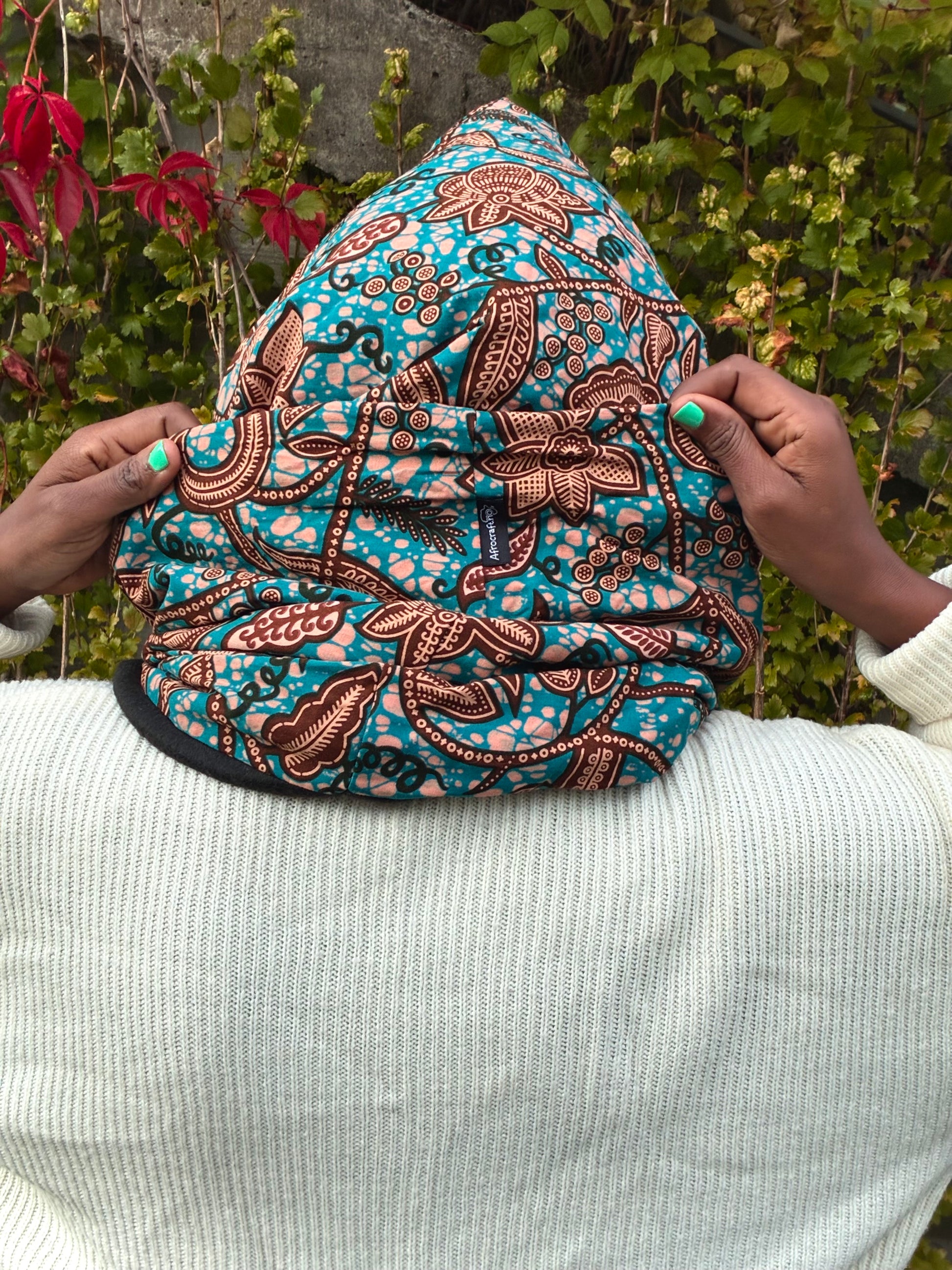 Afrikansk bomullsstoff med unike trykk på utsiden, myk fleece på innsiden – komfortabelt, varmt og stilig.
