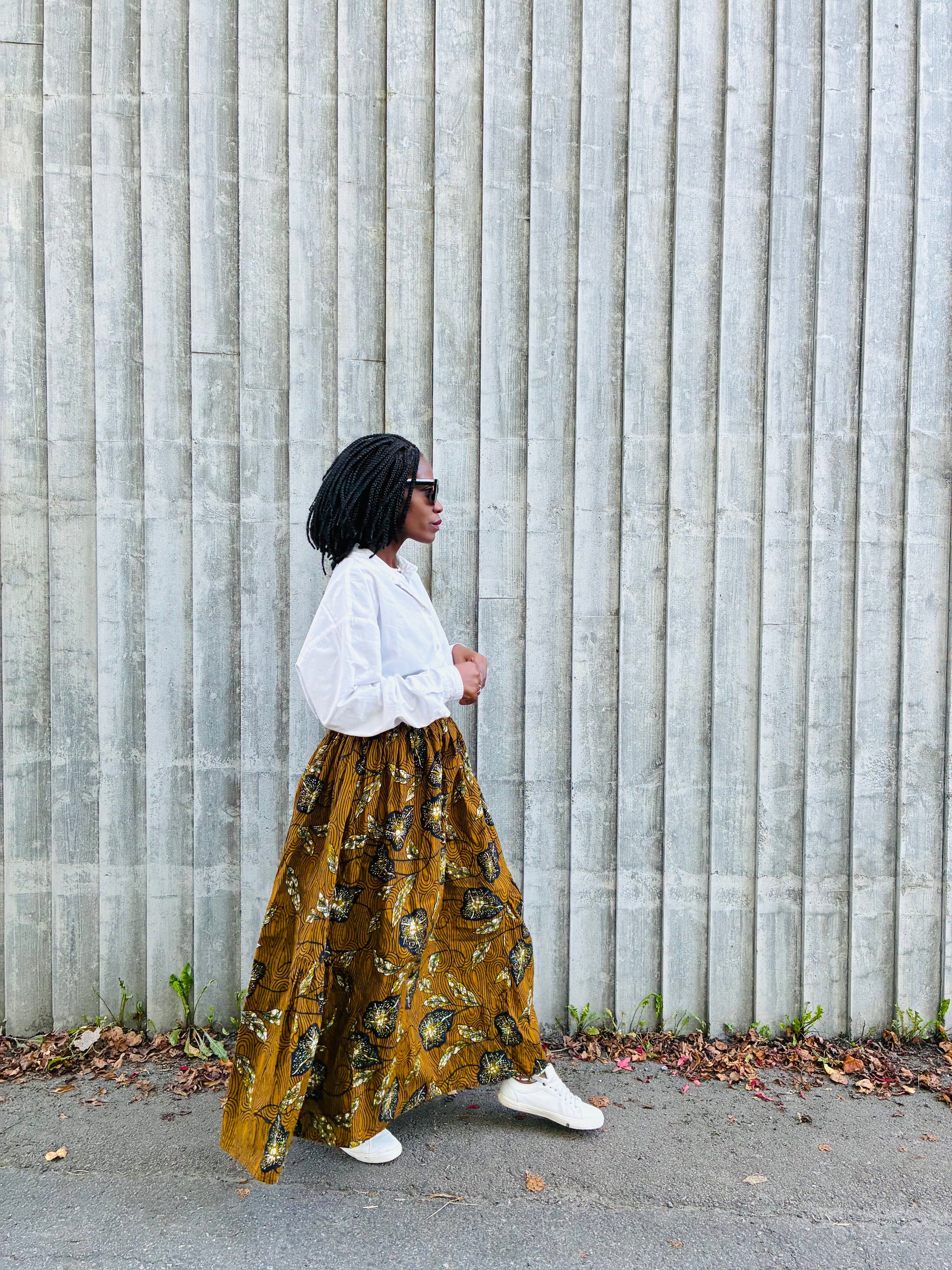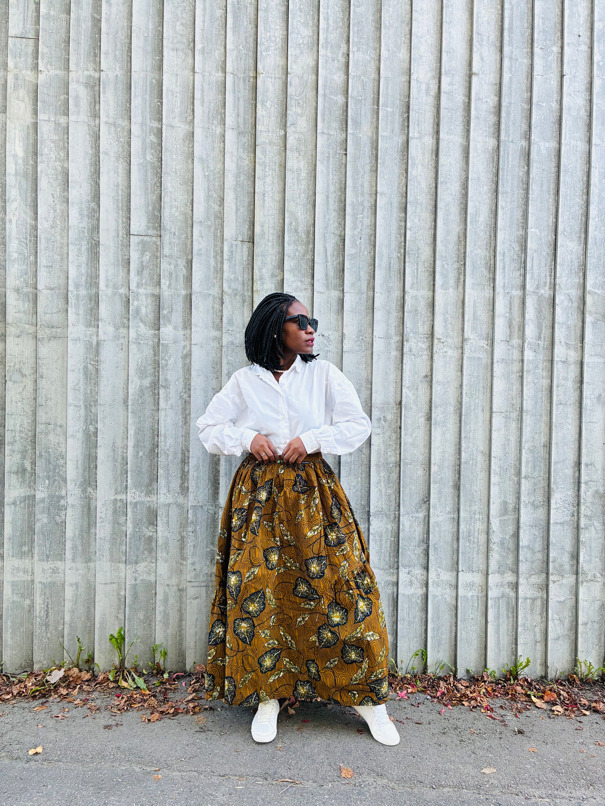 Et langt boho-inspirert skjørt i 100 % bomull med fargerike capulana-mønstre. Komfortabel, tidløs og unik – perfekt til både hverdags og spesielle anledninger.