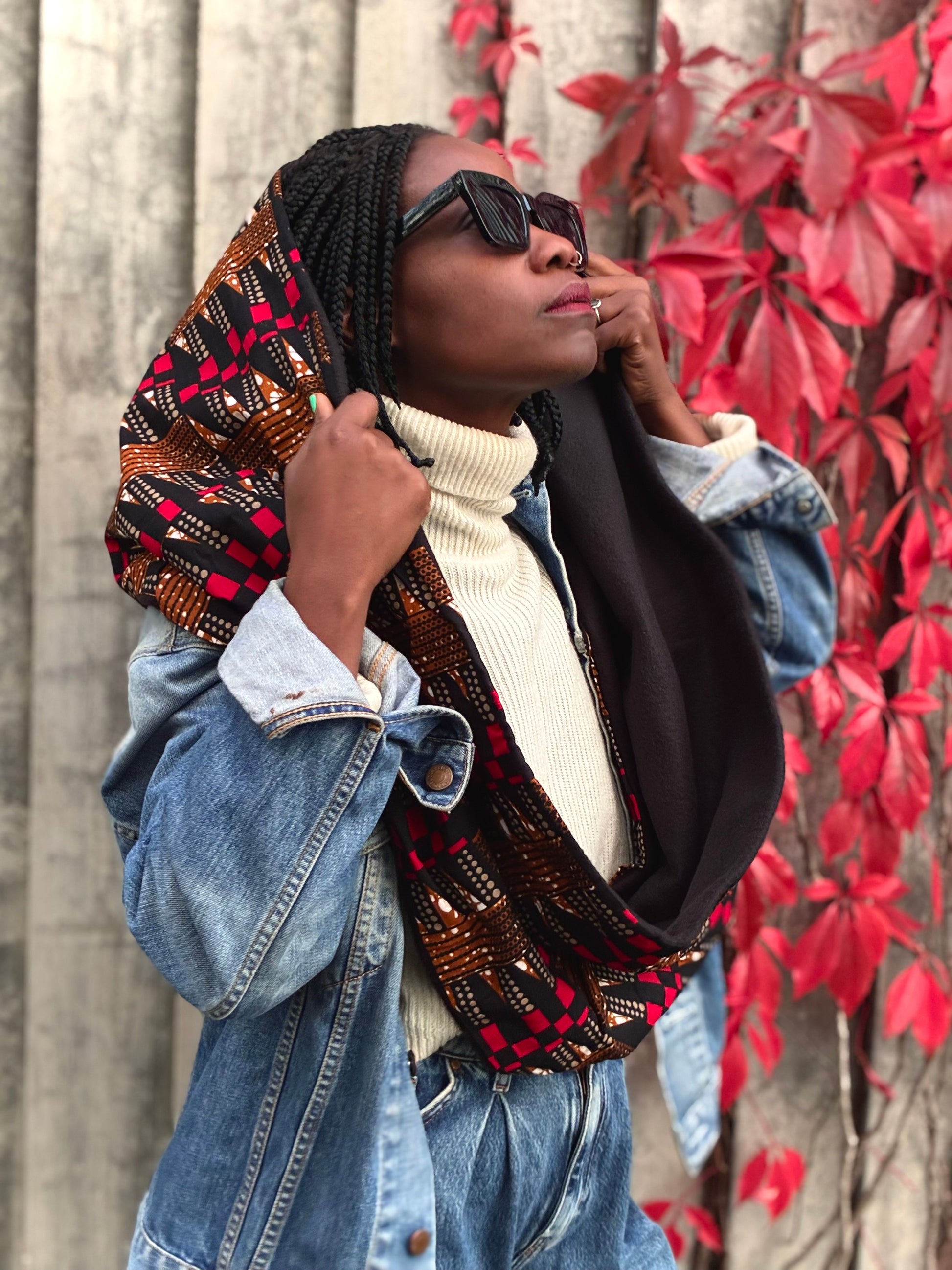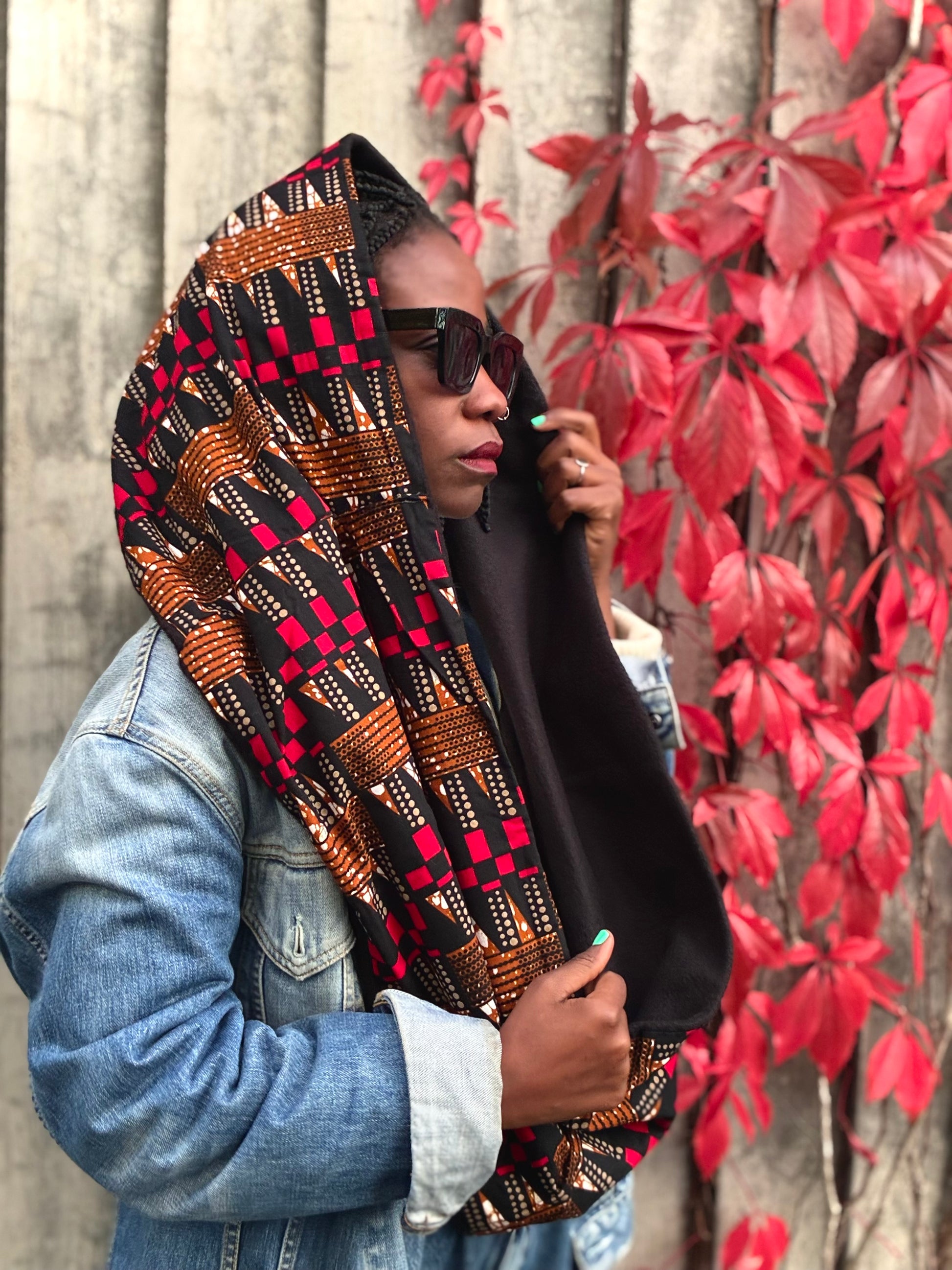 Afrikansk bomullsstoff med unike trykk på utsiden, myk fleece på innsiden – komfortabelt, varmt og stilig.