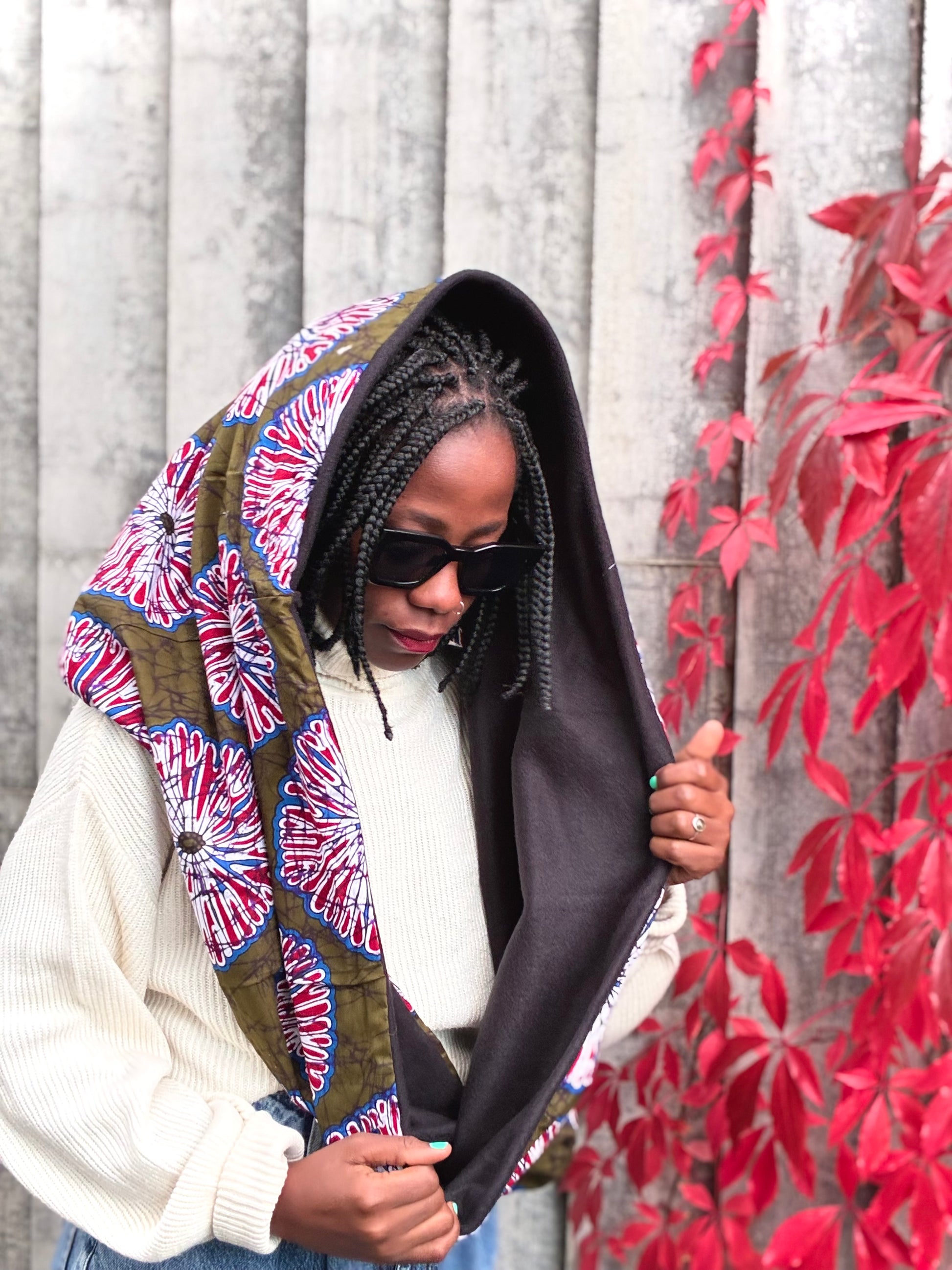 Afrikansk bomullsstoff med unike trykk på utsiden, myk fleece på innsiden – komfortabelt, varmt og stilig.